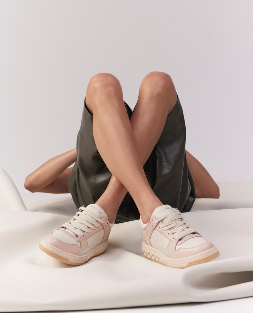 Mid-top sneaker, featuring a sleek design in an blush / nude / beige color mix, giving it a refined yet versatile look.