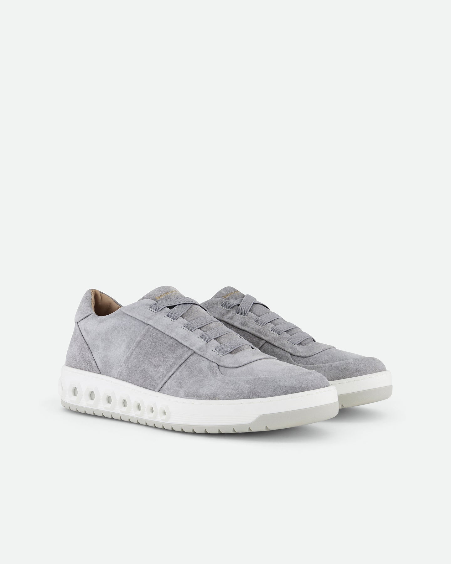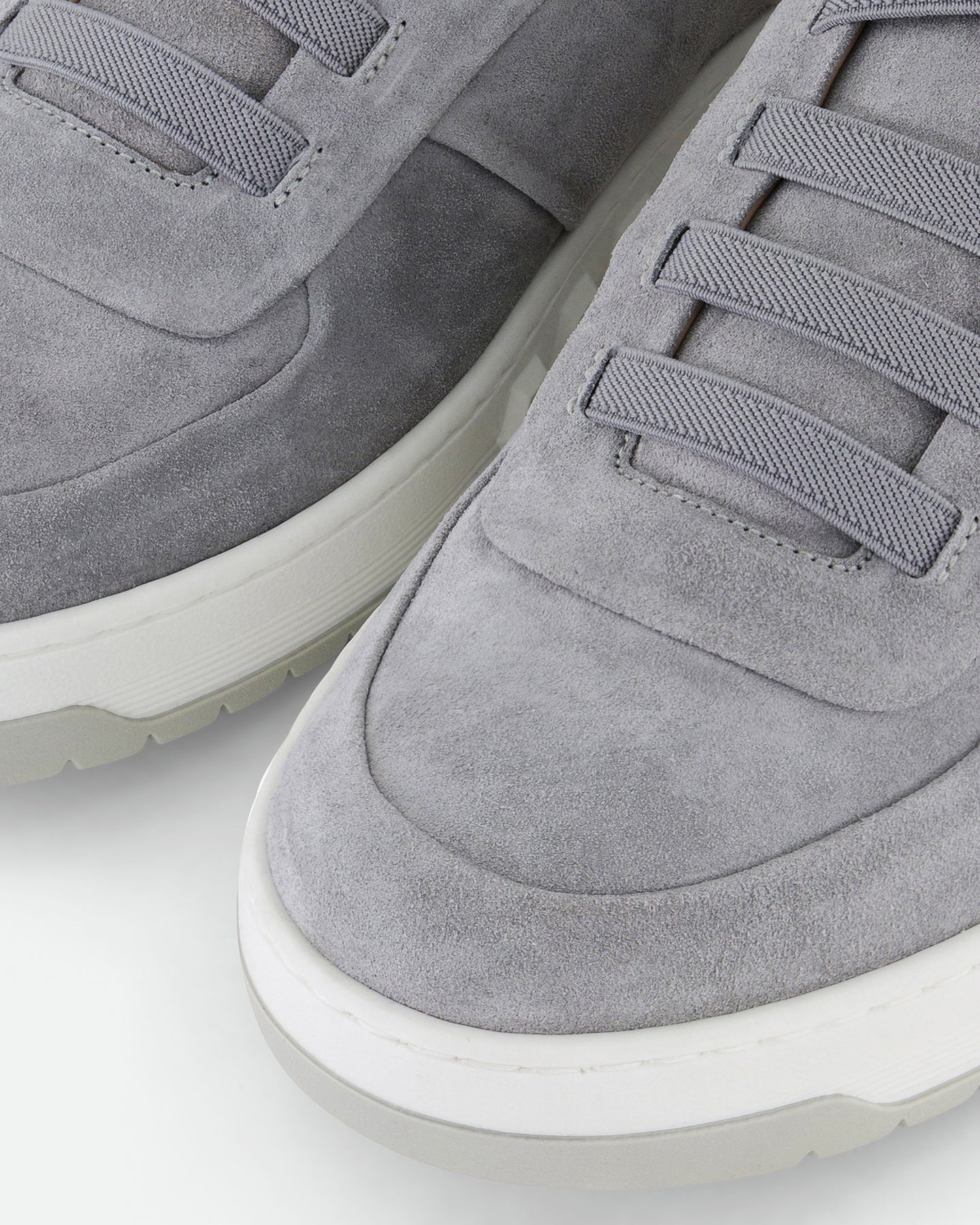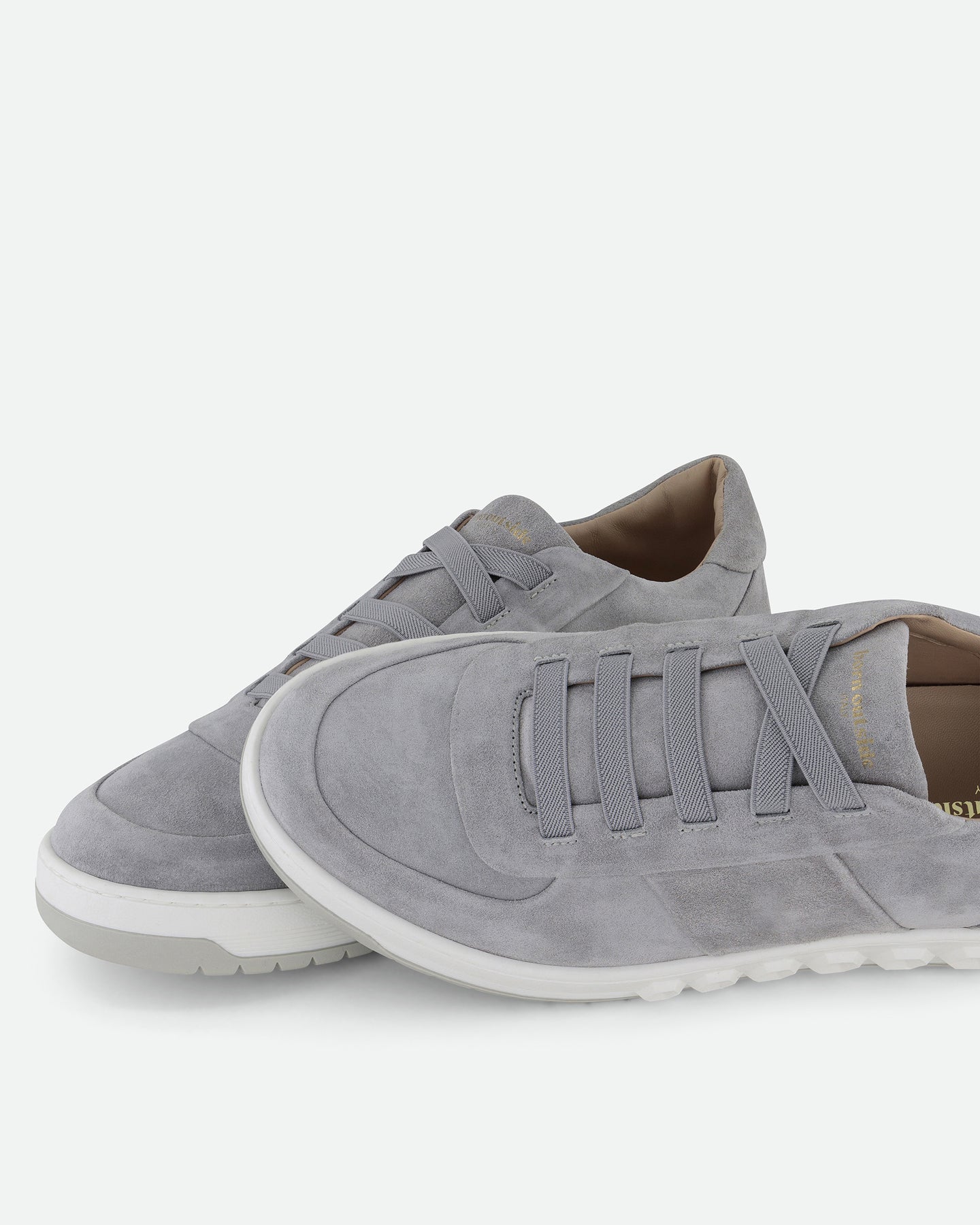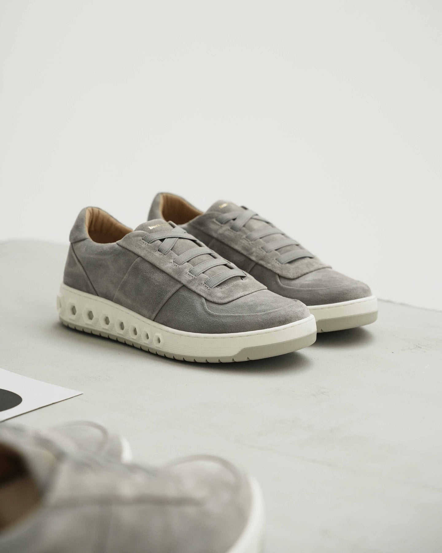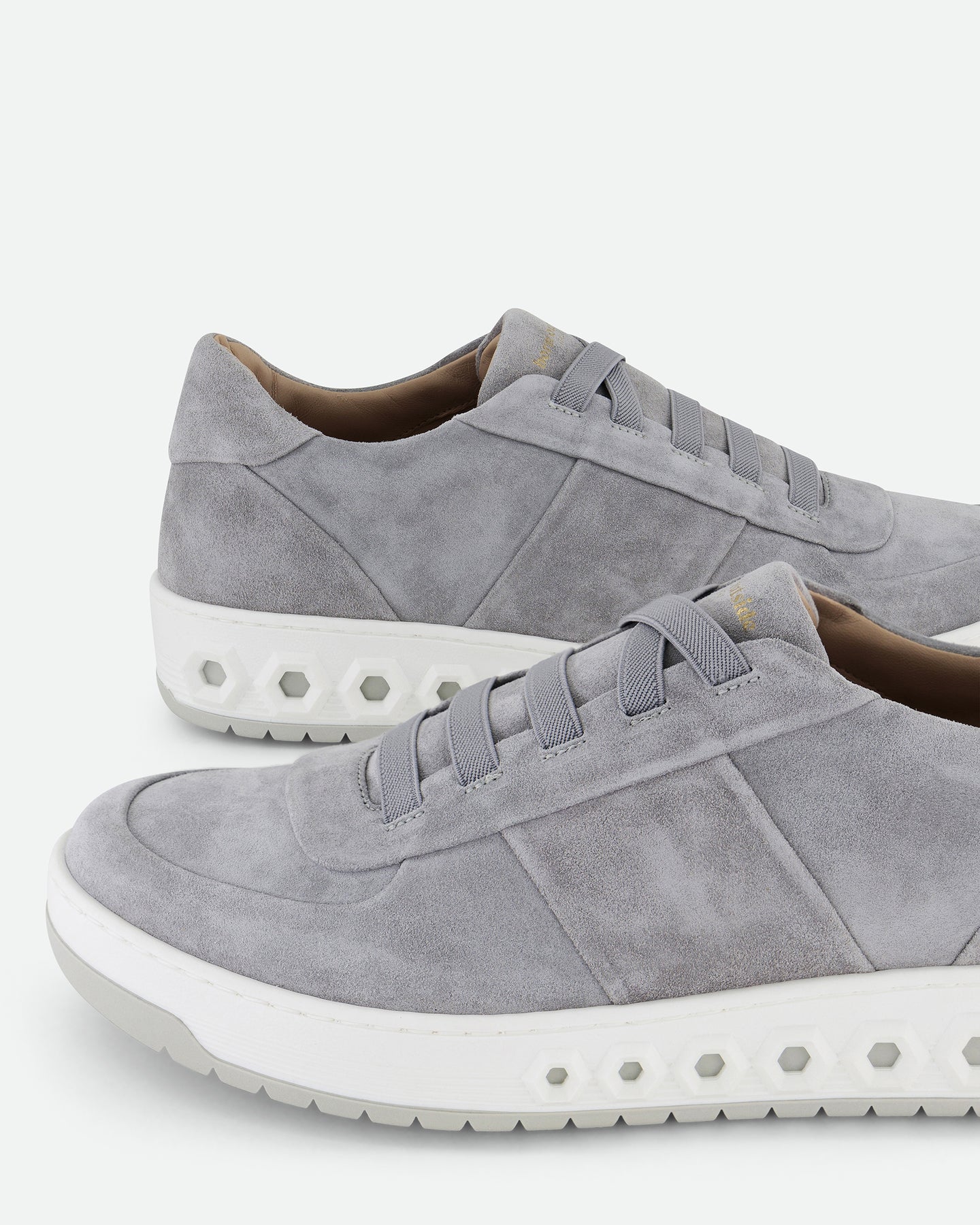 Rich grey suede. Elastic laces. Our signature hexnut sole—quietly bold.