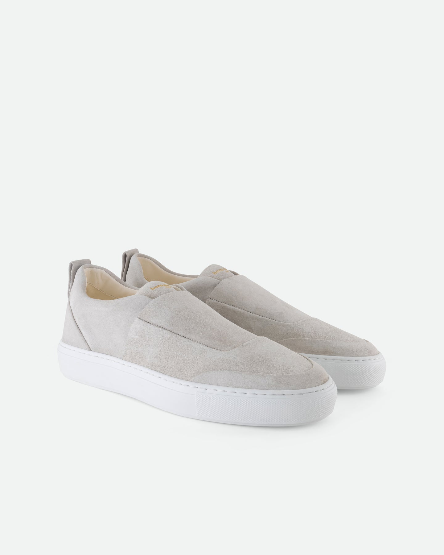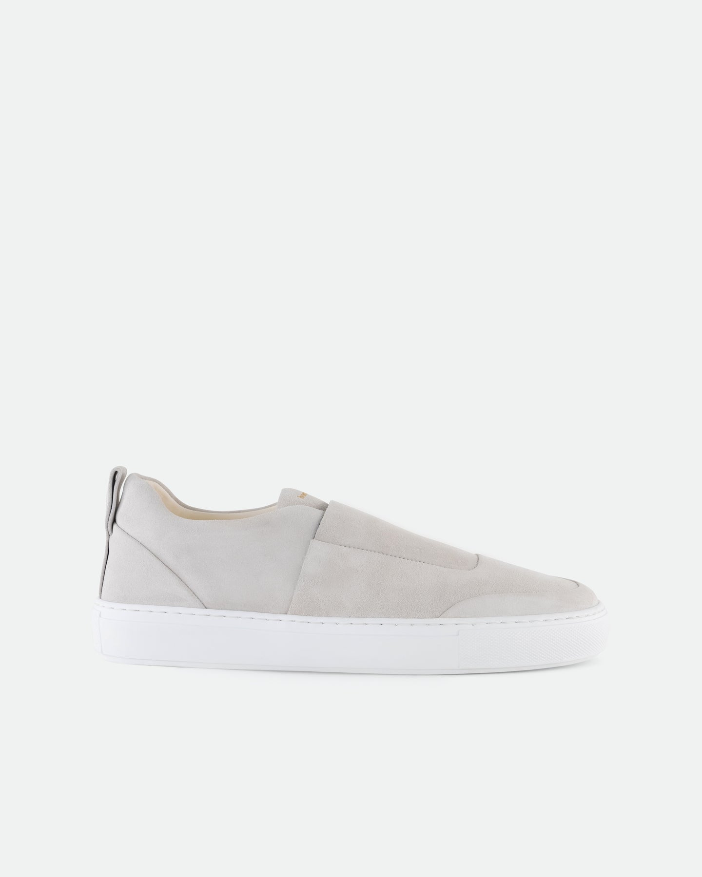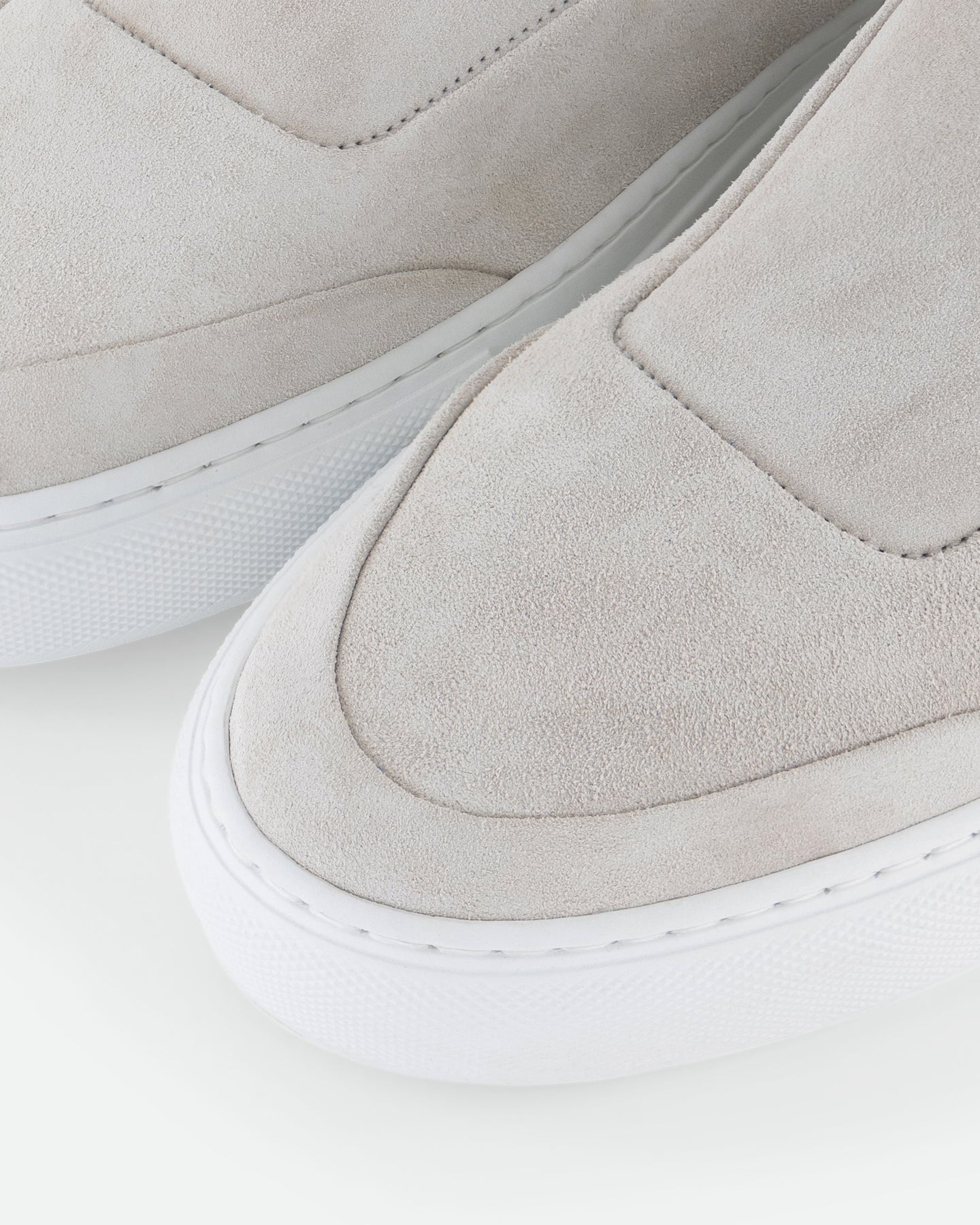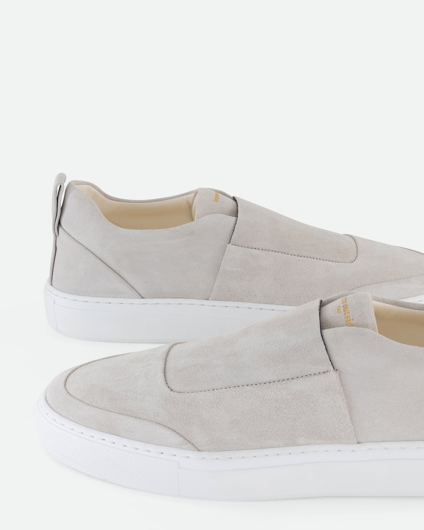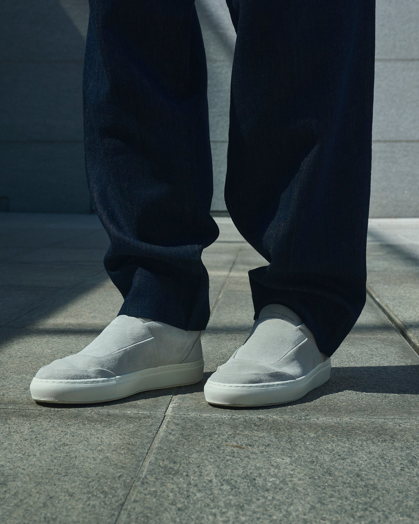 Sharp, low-profile slip-on sneaker with clean lines and minimal profile. Crafted from a custom elastic suede that hugs the foot while holding its shape.